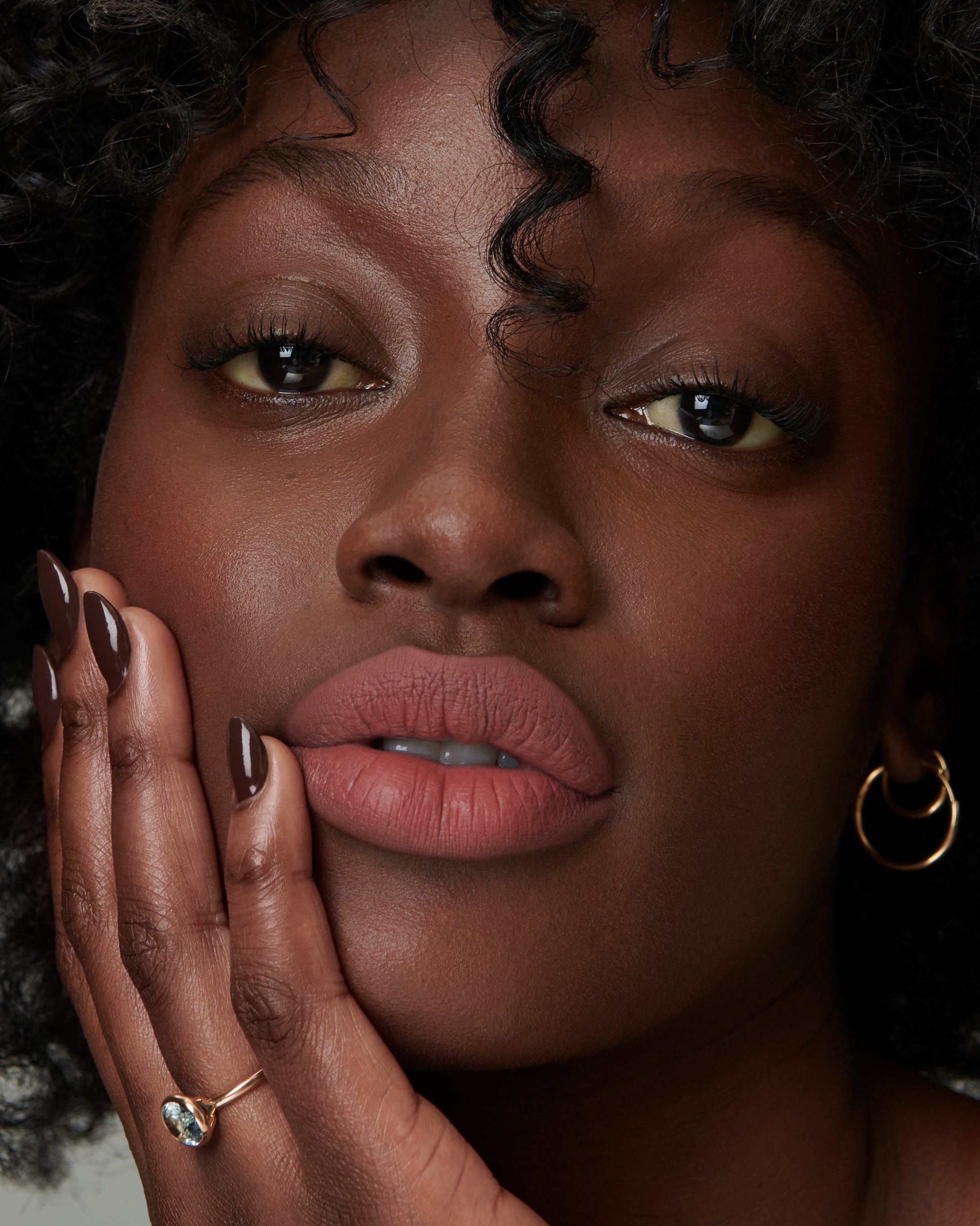 As seen on Lisa’s models. Velveteen can be worn as a fluffy. soft lip stain or a full on. bold power pout.