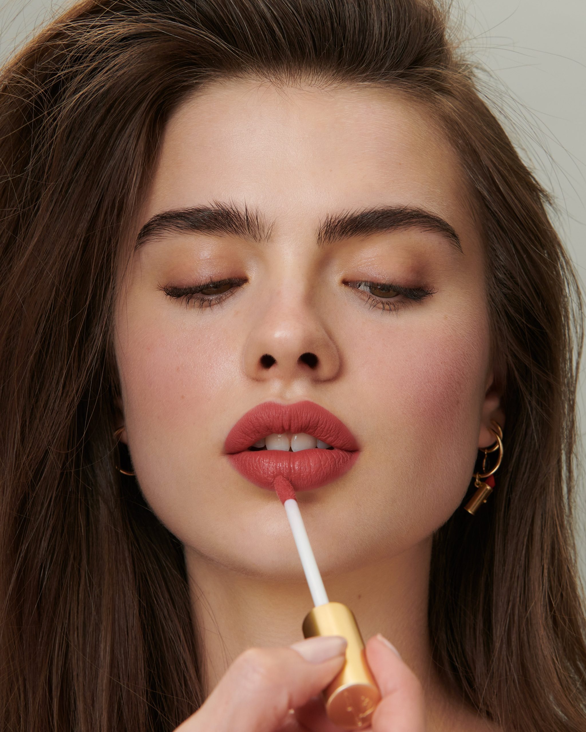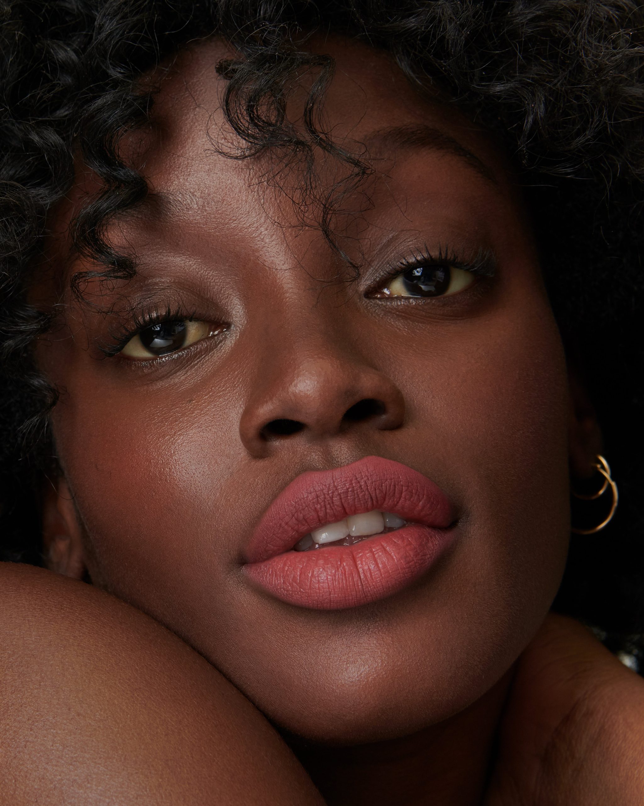 As seen on Lisa’s models. Velveteen can be worn as a fluffy. soft lip stain or a full on. bold power pout.