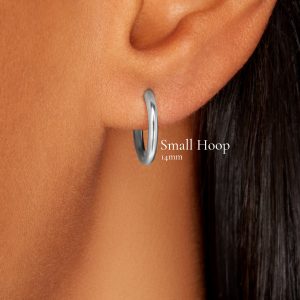 Effortlessly chic and super comfortable 18 carat white gold hoop earring. Measuring 14mm x 14mm total diameter. hoops are made exclusively by our jewellery workshop to Lisa’s specifications and feature a secure closing mechanism. Wear alone or select an interchangeable charm from a variety of eye-catching gemstone and lipstick charms. This hoop is approximately 1.20 grams in weight.