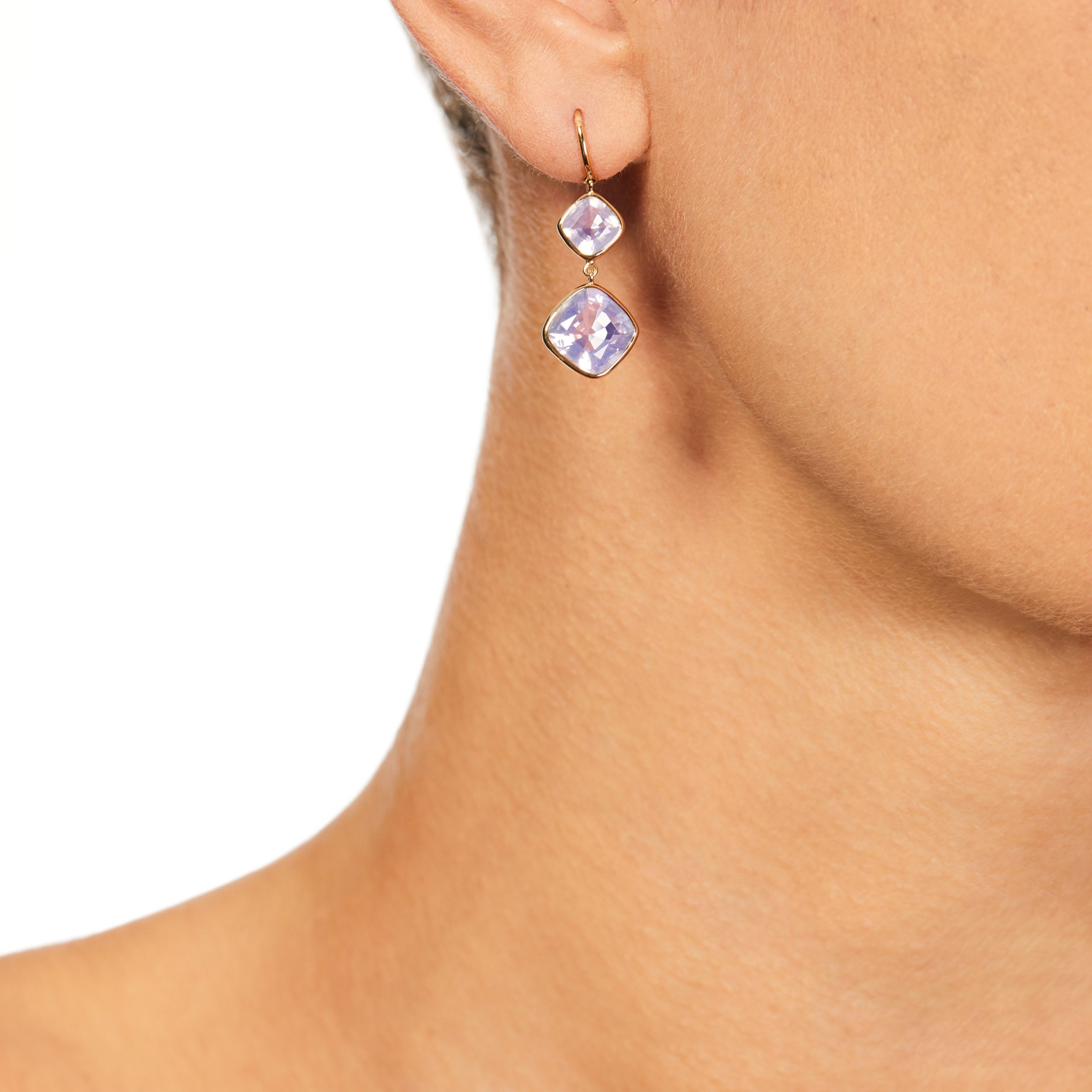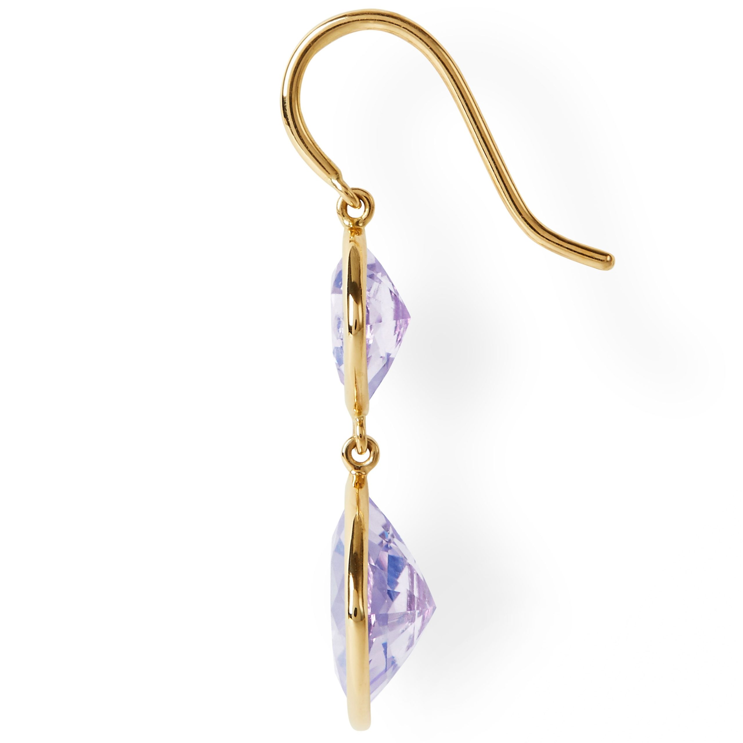 The Betty Earrings (Cushion Cut Lavender Quartz Double Drop Earrings in Solid 18ct Gold)