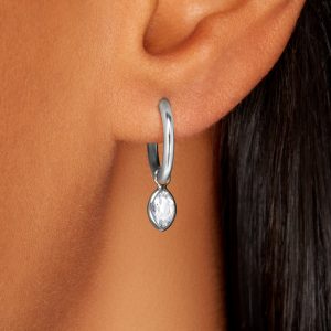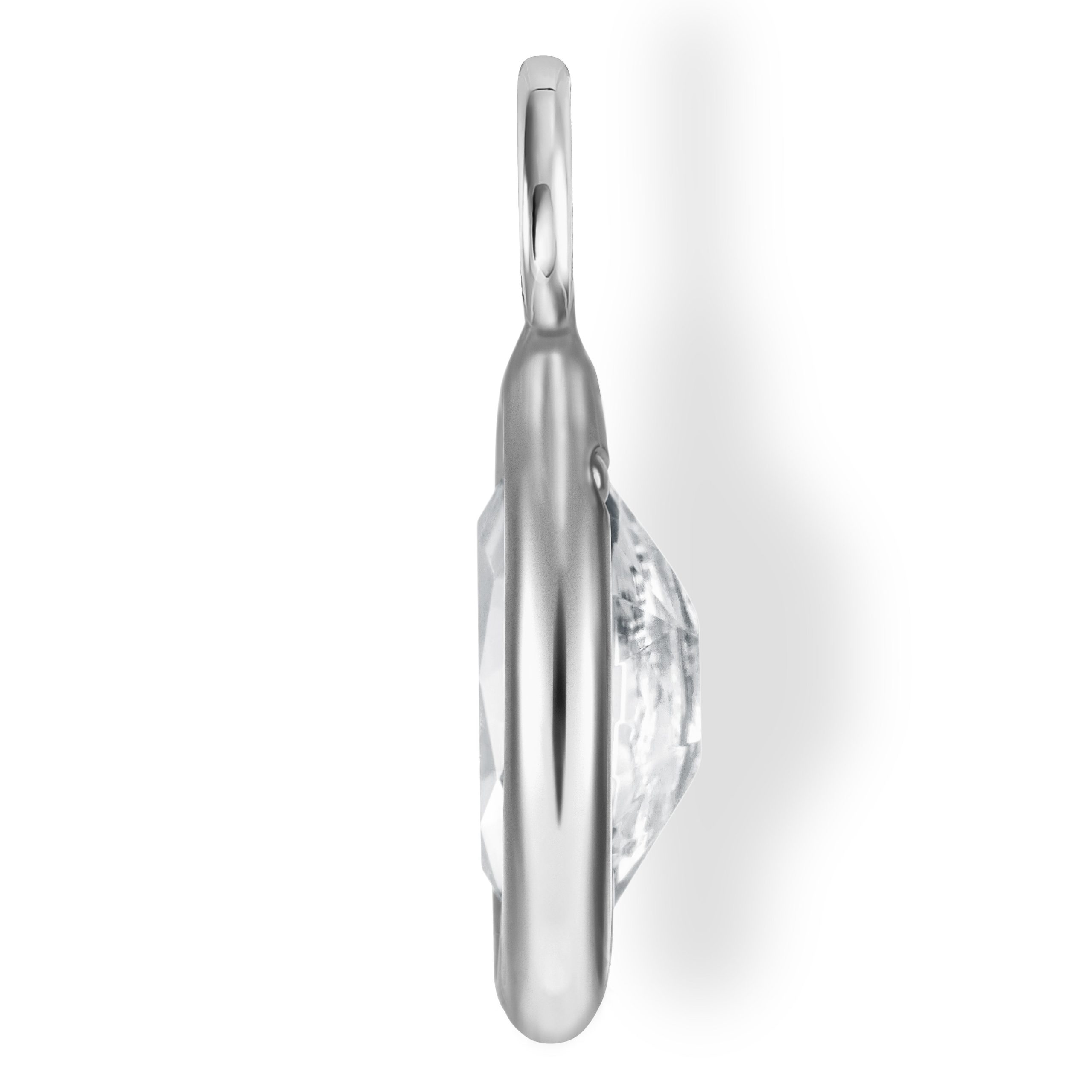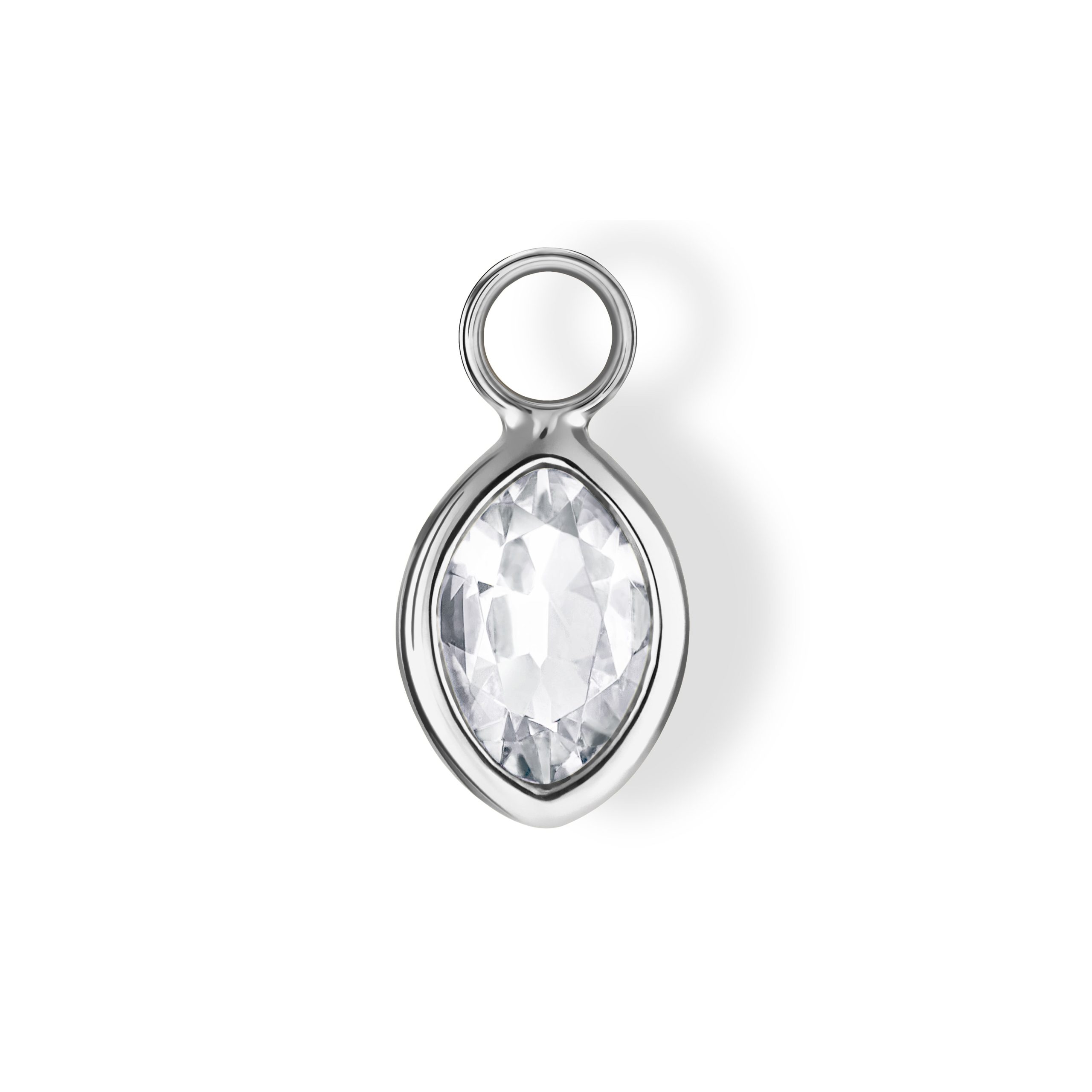 A natural white topaz with a clear colourless transparency making it the purest of the topaz family. The crystal clear simplicity compliments all skin tones. outfits and occasions. The charm is set with a beautiful vintage inspired moval cut stone which is a mixture of a pointed marquise and?a faceted oval. cut using traditional techniques to Lisa’s precise specifications. Measuring 6mm x 4mm and set in a unique 18 carat white gold open setting to reflect and refract the light and colour of the stone. This charm is approximately 1.22 carats in weight. The charm will arrive in a high quality. sealed and monogrammed white card envelope.