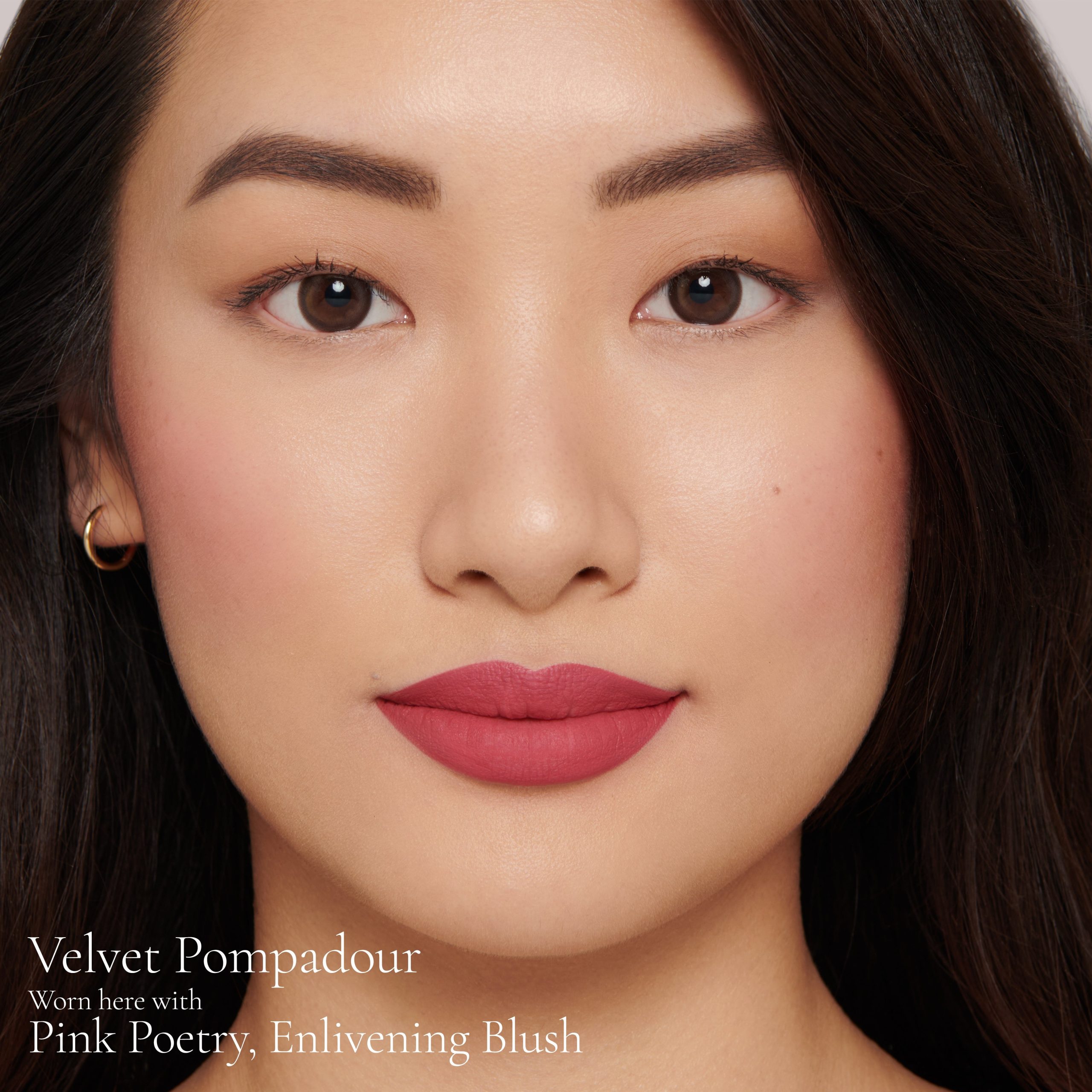 My take on the hue popularised by Madame de Pompadour. a fresh. lively medium pink with neutral undertones. Gives a flush of Rococo romance to lips and cheeks. truly worthy of the gossipy corridors of the Palace of Versailles.